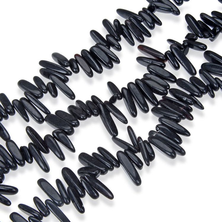 - (1 strand ~ 15 inch per strand), Stone/material: Black Tourmaline, natural stone, no dyed, no color enhanced; Beautiful large smooth edge pendulum point, spike, or tooth-shaped gemstone beads, they present great uniqueness and characters, and are perfect for earrings, bracelet, anklet, necklace, charms, keychains, and all kinds jewelry or craft making