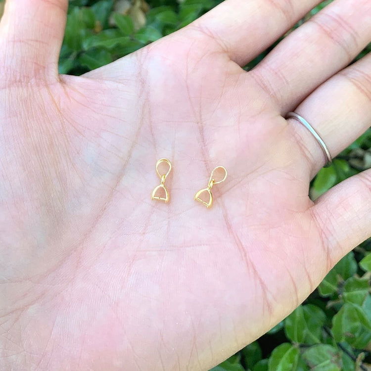 5pcs 925 Sterling Silver Pinch Bails, Pendant Clasp, Real 18K Yellow Gold Plated, Size Selections: 10.5/13/16/18/20mm