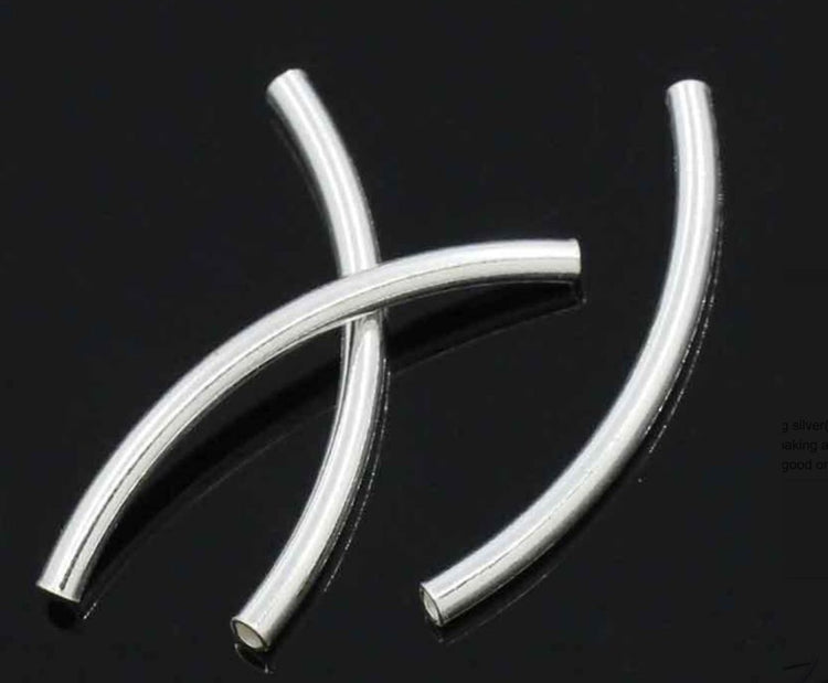 10pcs 925 Sterling Silver Curved Noodle Tubes, Hole ID 1.5mm, Size Selections: 20mm/25mm/30mm/35mm/40mm