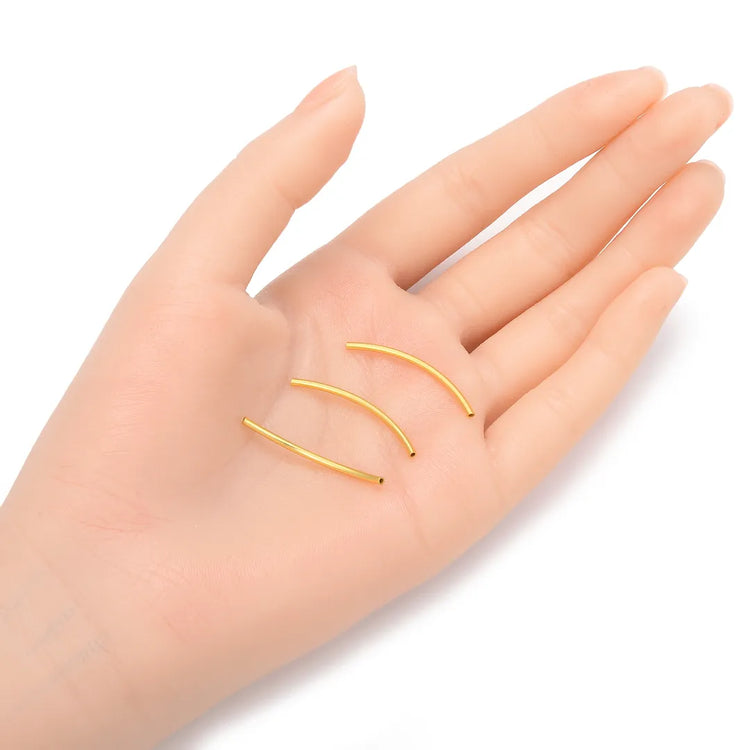 10pcs 925 Sterling Silver Curved Noodle Tubes, Real 18K Yellow Gold Plated, Hole ID 1mm, Size Selections: 15mm/20mm/30mm