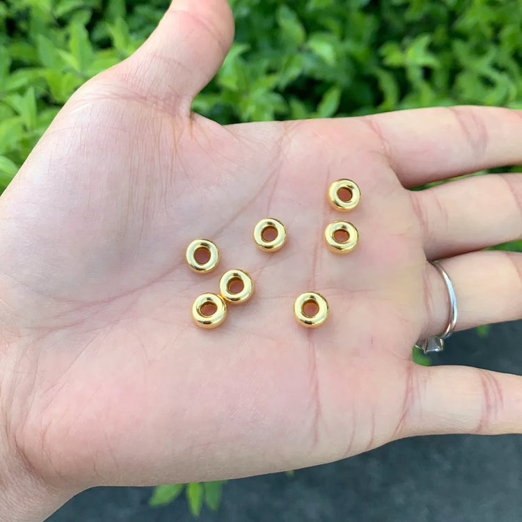 10pcs 925 Sterling Silver Puffy Rondelle Spacer Beads, Real 18K Yellow Gold Plated, Size Selections: 4mm/5mm/6mm/8mm