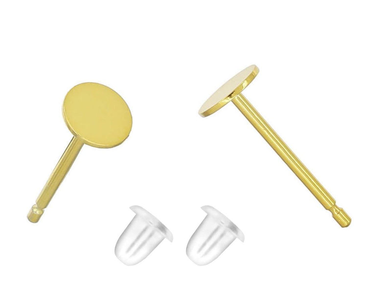 10 Pairs 925 Sterling Silver Earring Posts, Real 18K Yellow Gold Plated, Glue On Flat Board, 20pcs Plastic Earring Backs, Flat Board Selections: 3/4/6/8mm