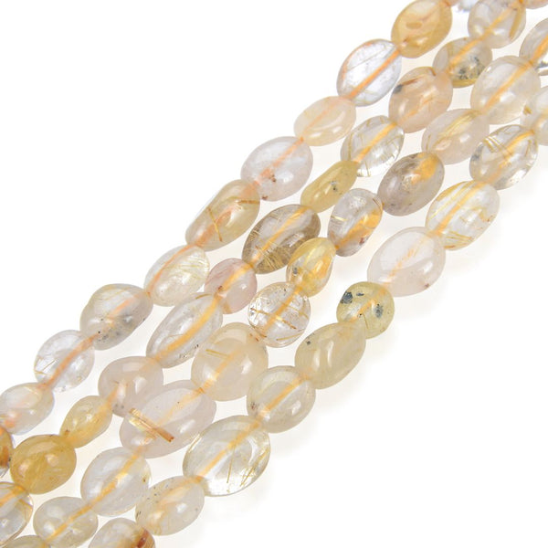 - (1 strand, 51 to 56pcs per strand, about 15 inch per strand), Stone/material: Gold Rutilated Quartz, natural stone, no dyed, no color enhanced; beautiful smooth natural free form gemstone beads, they present great uniqueness and characters;