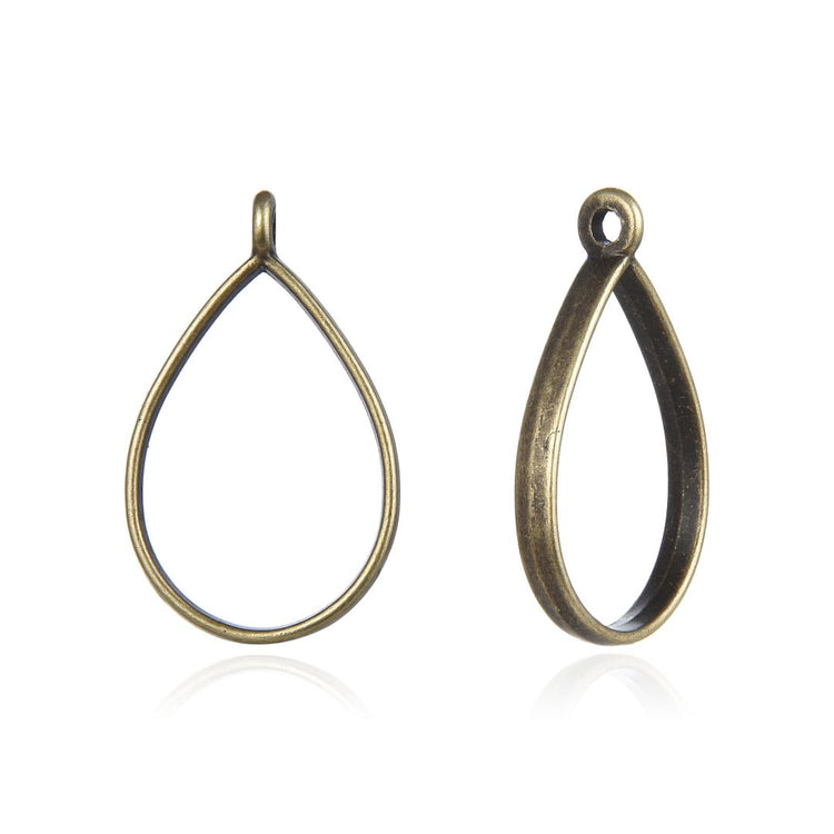 20pcs Open Back Pearl Teardrop Bezel Blanks, Pendant Base, Large Resin Mold, Tarnish Resistant Antique Bronze, 34x20mm, CF287-4