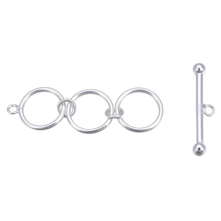 - largest toggle round ring size: about 10mm (0.4 inch), total length of 3 rings is 32 mm (1.26 inch), bar length about 20mm (0.8 inch); larger closed ring about 4.5mm OD with inner diameter 2.5mm (0.1 inch), smallest closed rings about 3.5mm (0.14 inch) OD with inner diameter 2mm (0.08 inch)