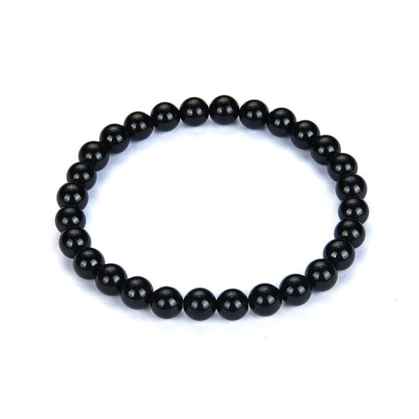 1 Strand Stretch Natural Grade A Black Tourmaline Beaded Gemstone Bracelet, 6mm Beads, Length Selections: 7 inch/7.5 inch/8 inch