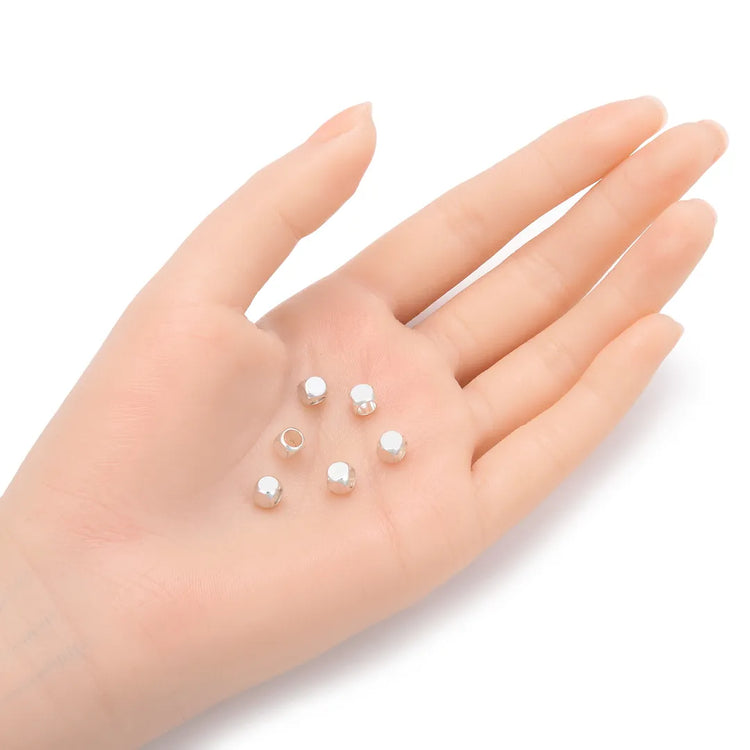 100pcs Smooth Large Hole Cube Beads, Sterling Silver Plated Brass, Size Selections: 3mm/4mm/5mm/6mm/8mm